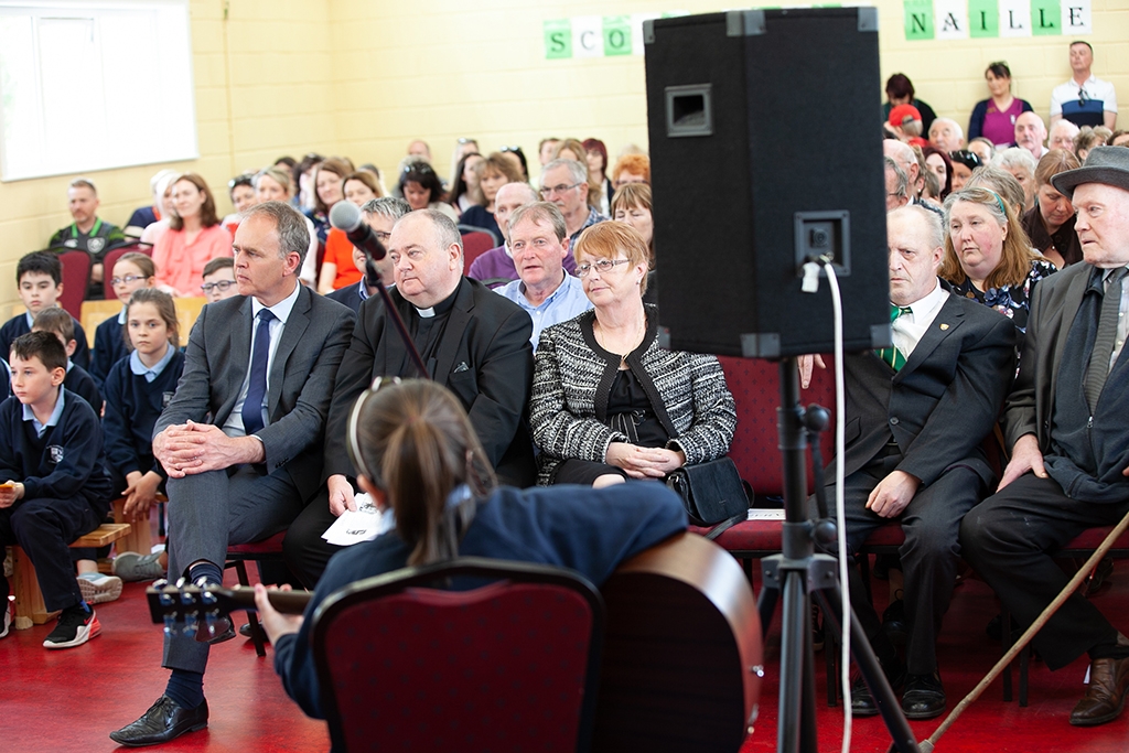Minister McHugh and Hugh Gallagher, brother of Fr. Seamus, unveiled a memorial bench and willow dome after the pupils of the school had performed a number of musical tributes to Fr. Seamus, followed by a tribute by Fr. Seamus’ uncle, Danny Meehan.