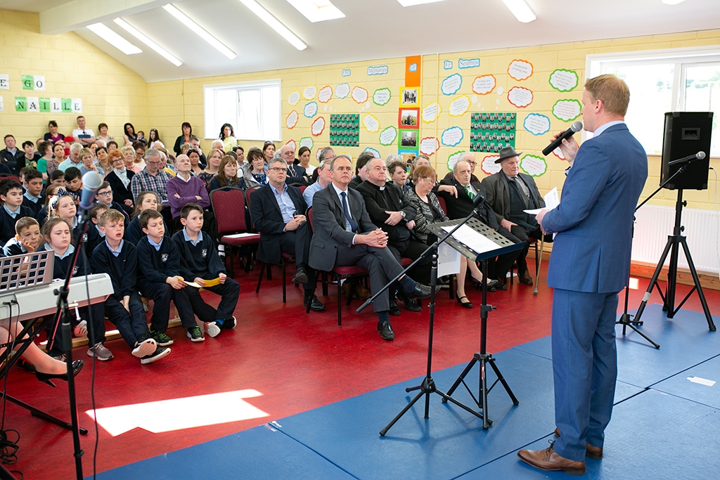 Minister McHugh and Hugh Gallagher, brother of Fr. Seamus, unveiled a memorial bench and willow dome after the pupils of the school had performed a number of musical tributes to Fr. Seamus, followed by a tribute by Fr. Seamus’ uncle, Danny Meehan.