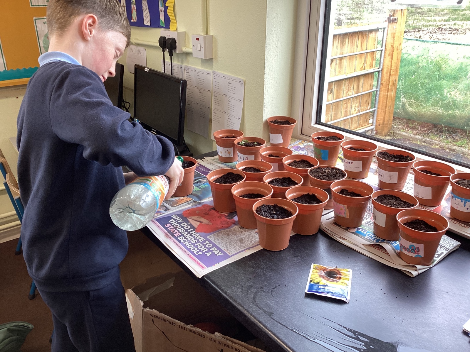 The pupils of 4th Class have been busy this week! Today they planted sunflowers.